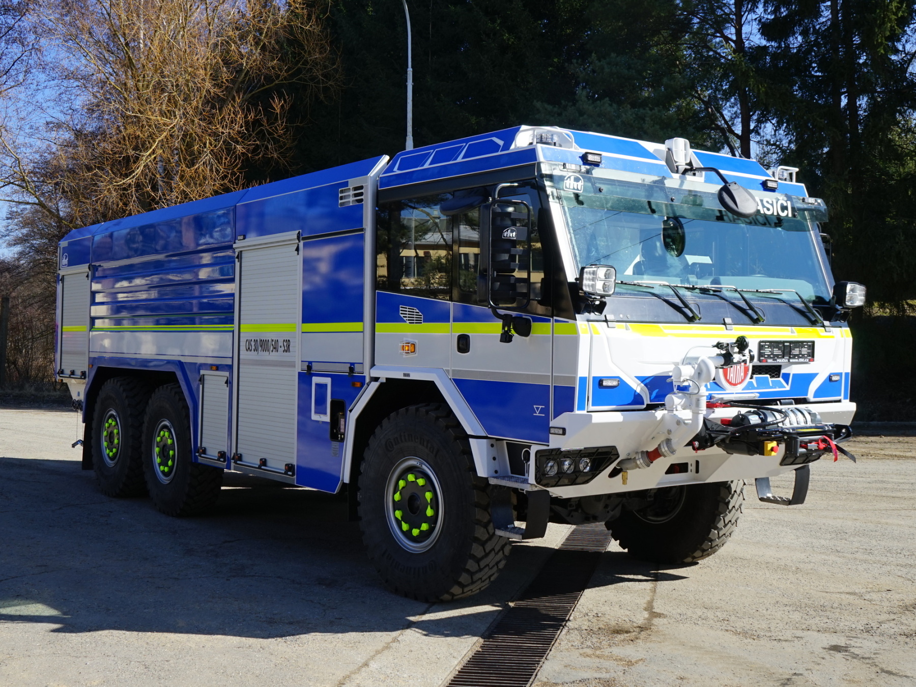 ✅ Plnohodnotná výbava: Nechybí vysokotlak s výkonem 250 l/min při 4,0 MPa, výkonný osvětlovací stožár pro noční zásahy a lanový naviják.